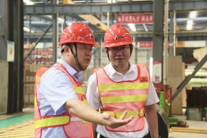 龔友良總裁向龐帥主任介紹車間情況